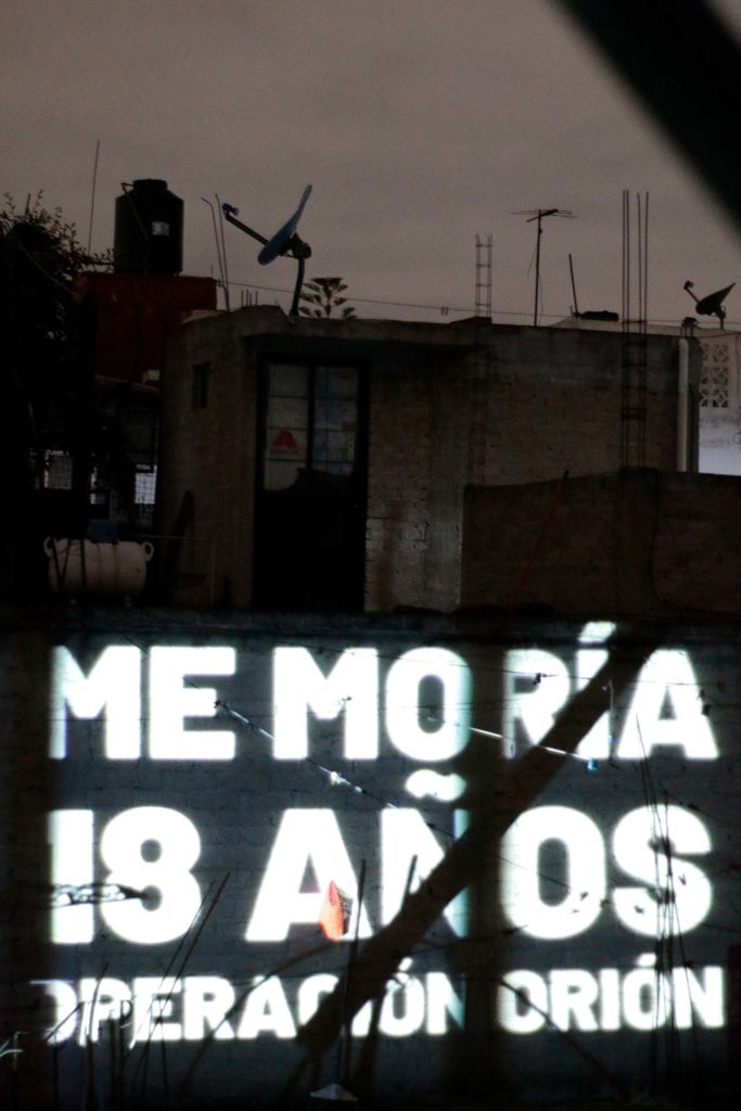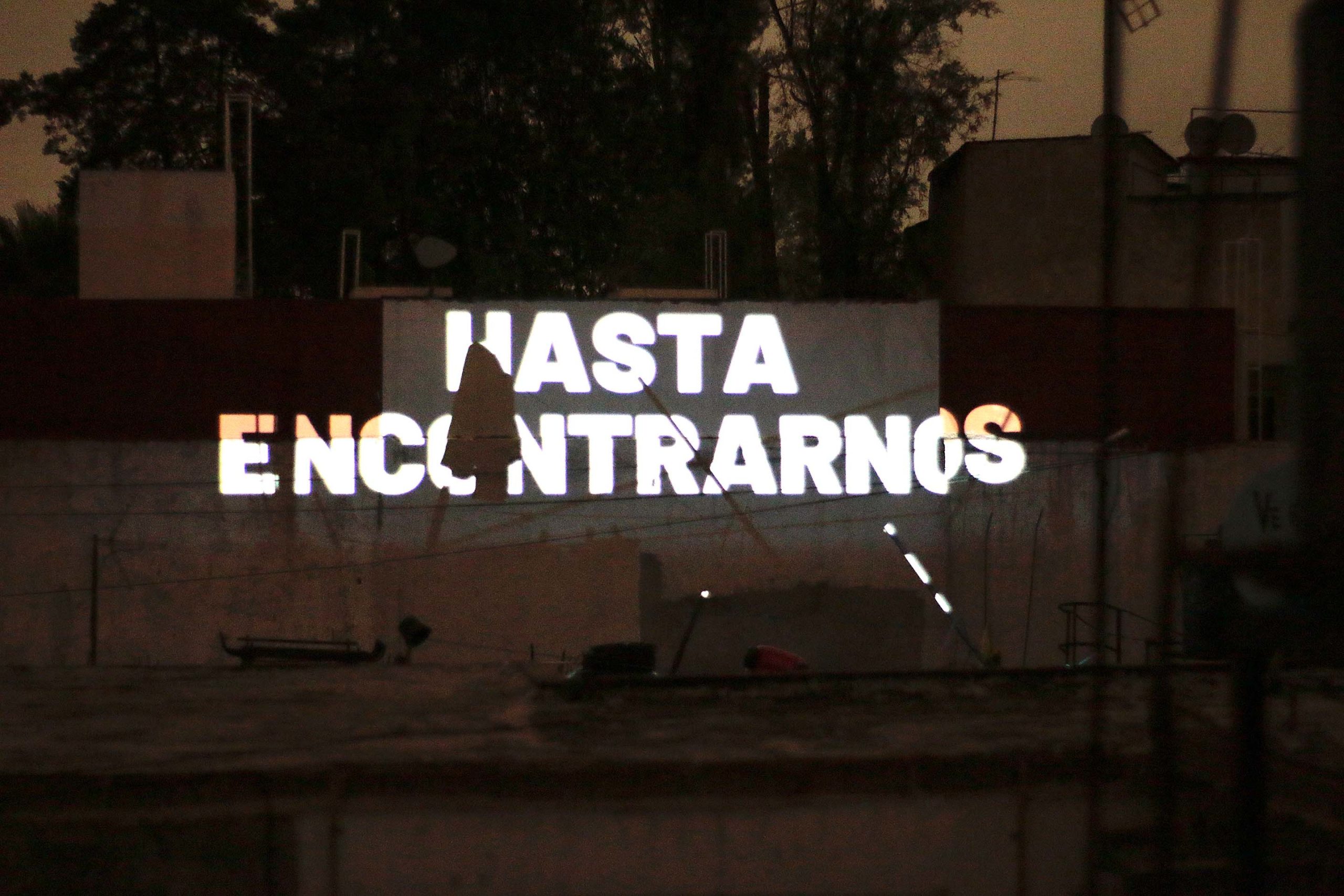 En esta intervención artística proyecto la frase Hasta encontrarnos en las calles porque siento que el encuentro es mutuo: queremos encontrar a la persona desaparecida y también a ese algo de nosotros que se fue con ella. Esta frase es una alusión a la consigna «Hasta encontrarlos», enunciada por familiares de las y los desaparecidos en Colombia y México.